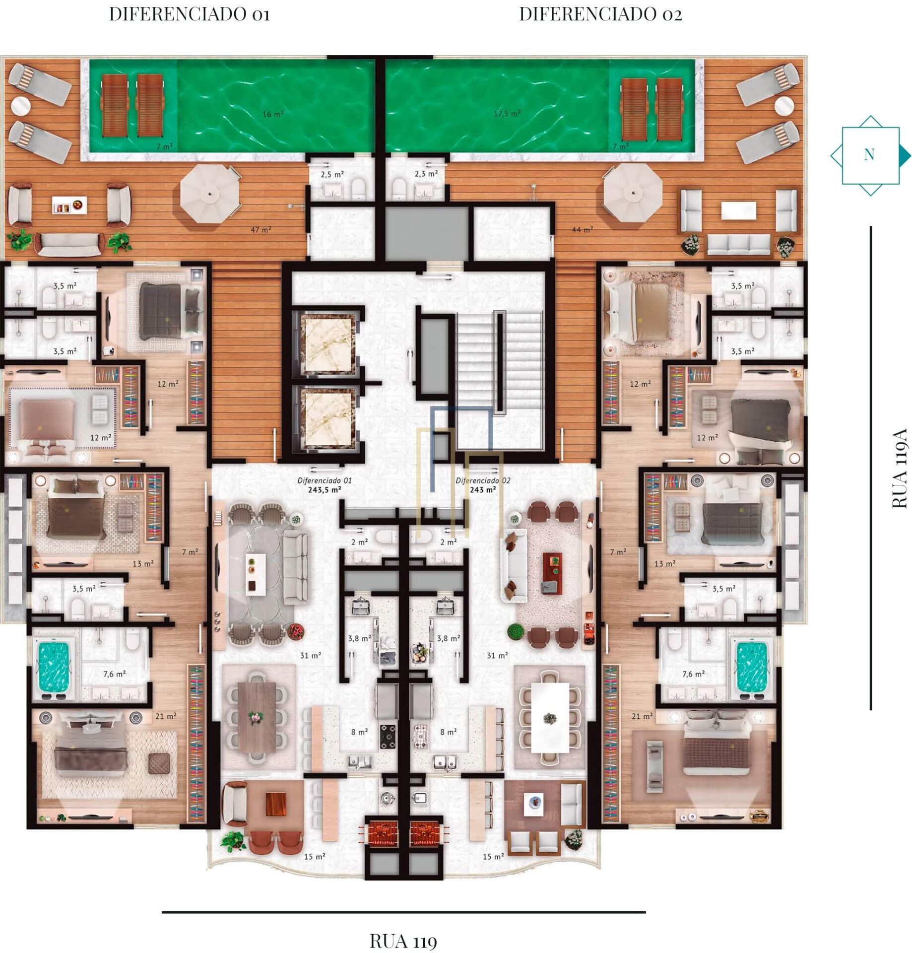 Com 243 m² de área privativa e 383 m² de área total